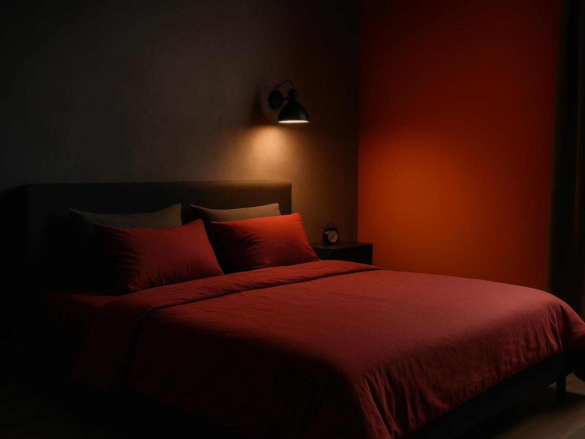 Красный — сильный, энергичный цвет, который ассоциируется с движением и страстью. В спальне он способен повышать кровяное давление и стимулировать мозг, что мешает уснуть. Даже небольшие акценты (например, постельное бельё или занавески) могут создавать ощущение тревоги и перегруженности.