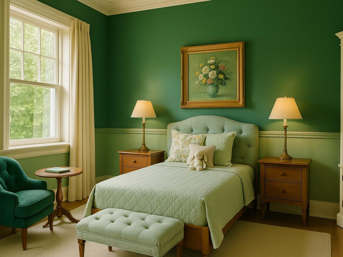 Психологи отмечают, что зелёный цвет снижает уровень тревожности у детей, помогает восстановить силы и стабилизировать эмоциональный фон. В спальне он способствует здоровому сну и лёгкому пробуждению.