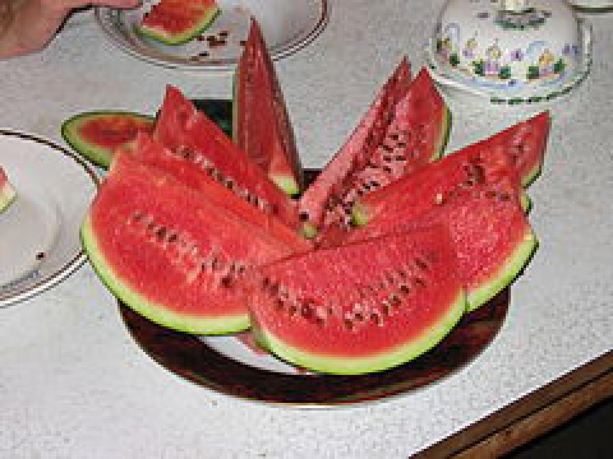 - Нарежьте арбуз треугольниками на четвертинки.