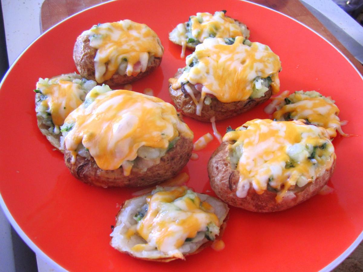 Когда картофель остынет, сделайте сверху надрез, ложкой вычерпайте содержимое каждой картошки.