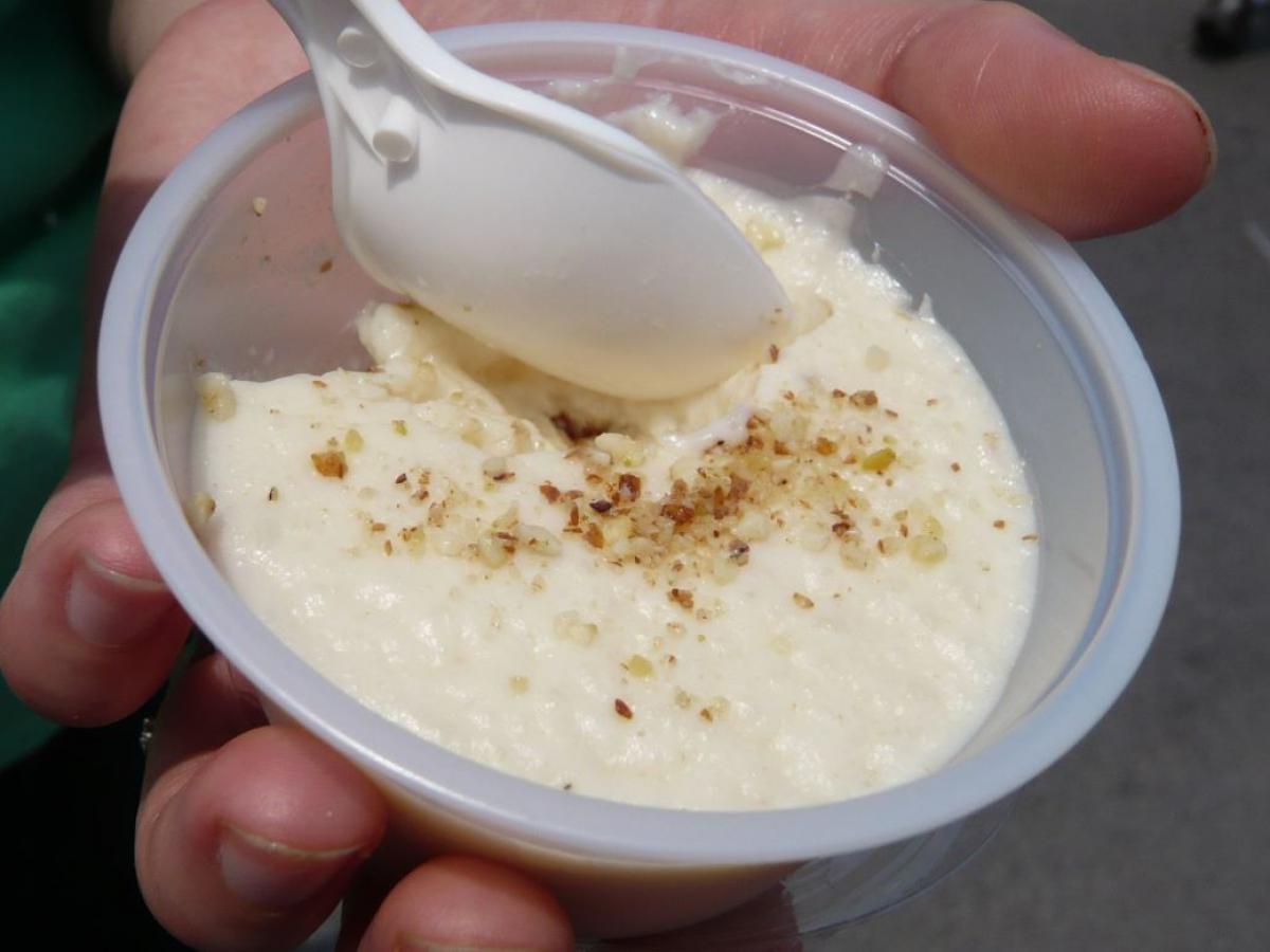 В конце добавьте в смесь яйца и хорошо перемешайте. Снимите с огня и подавайте охлаждённым.