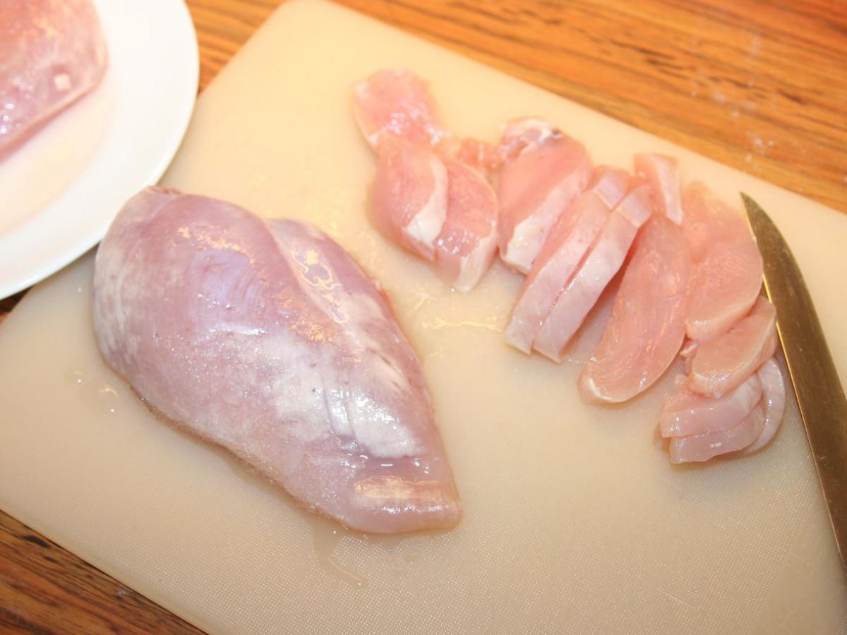 Полкило куриных грудок без костей и кожи, нарезанных небольшими кусочками