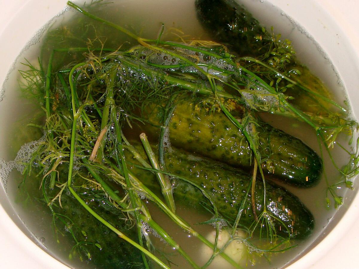 "Затем залейте огурцы водой, добавив на каждый литр воды две столовые ложки соли без верха. Примерно к концу третьего дня огурцы перебродят — они будут пускать пену, пузыриться, рассол помутнеет", — цитирует слова повара "Вечерняя Москва".