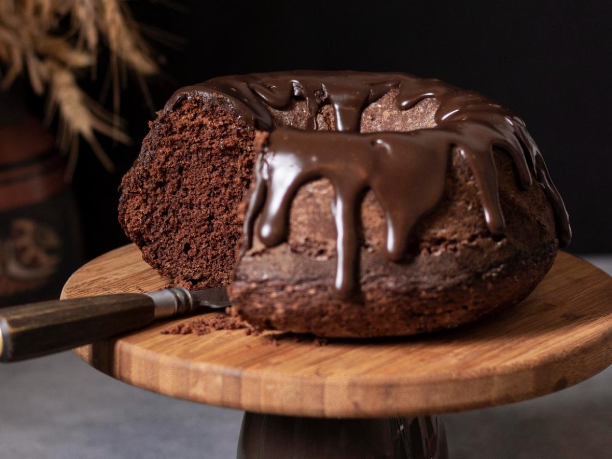 Когда кекс будет готов, полейте его растопленным шоколадом и украсьте апельсиновой цедрой.