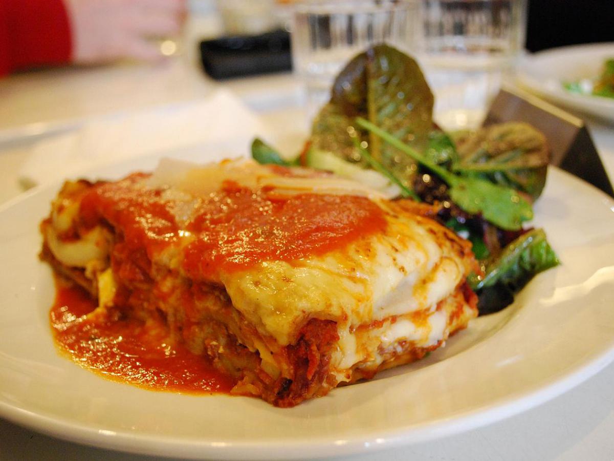 Лаза́нья — макаронное изделие, тонкий лист теста в форме квадрата или прямоугольника, а также блюдо итальянской кухни, традиционно приготовляемое из тонких листов теста (собственно и называющихся лазанья) со слоями различной начинки.