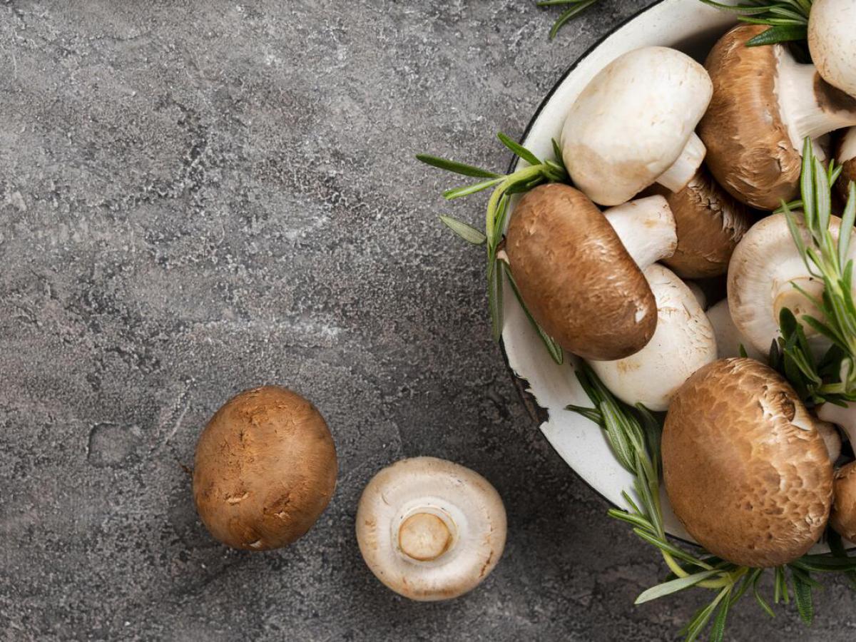 Подготовка ингредиентов: тщательно промойте шампиньоны. Мелкие грибы можно оставить целыми, крупные — разрежьте на половинки или четвертинки.