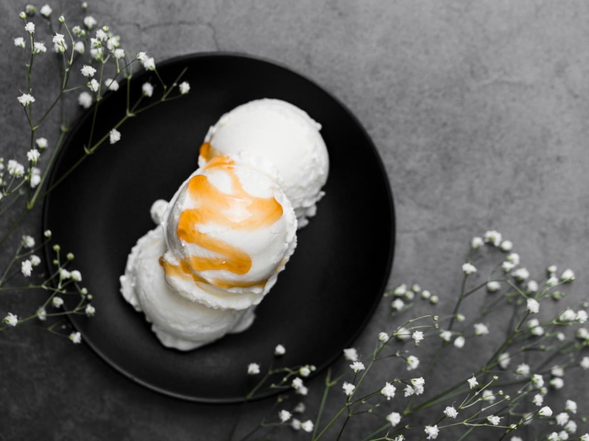 Домашнее мороженое готово. Его можно подавать, разделив на порции, и украсить по вкусу: шоколадной крошкой, орехами, вареньем или свежими фруктами.