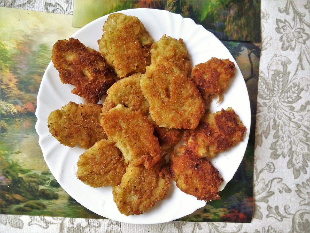 Все ингредиенты перемешивают до однородности, формируют небольшие лепешки и выкладывают на разогретую сковороду с антипригарным покрытием. Масло не требуется — куриный жир, выделяющийся при жарке, придаст румяную корочку.