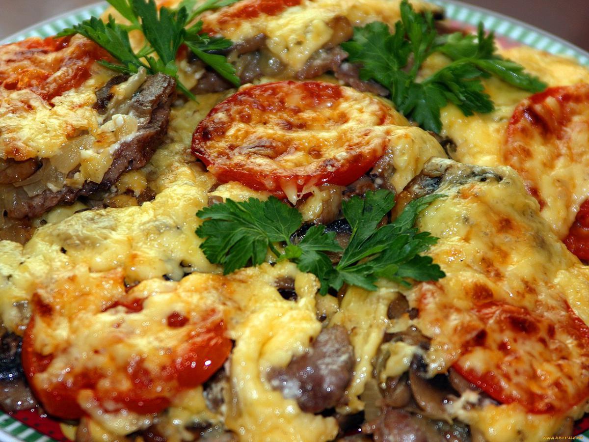 Это блюдо с громким названием "по-французски" к Франции, конечно, отношения не имеет. Зато оно давно стало классикой наших ужинов. Вариант с индейкой — настоящая находка: менее жирный, чем со свининой, но ничуть не менее вкусный. Нежное мясо, ароматные грибы, сочные томаты и расплавленный сыр — всё, что нужно для уютного, сытного ужина с легким романтическим настроением.