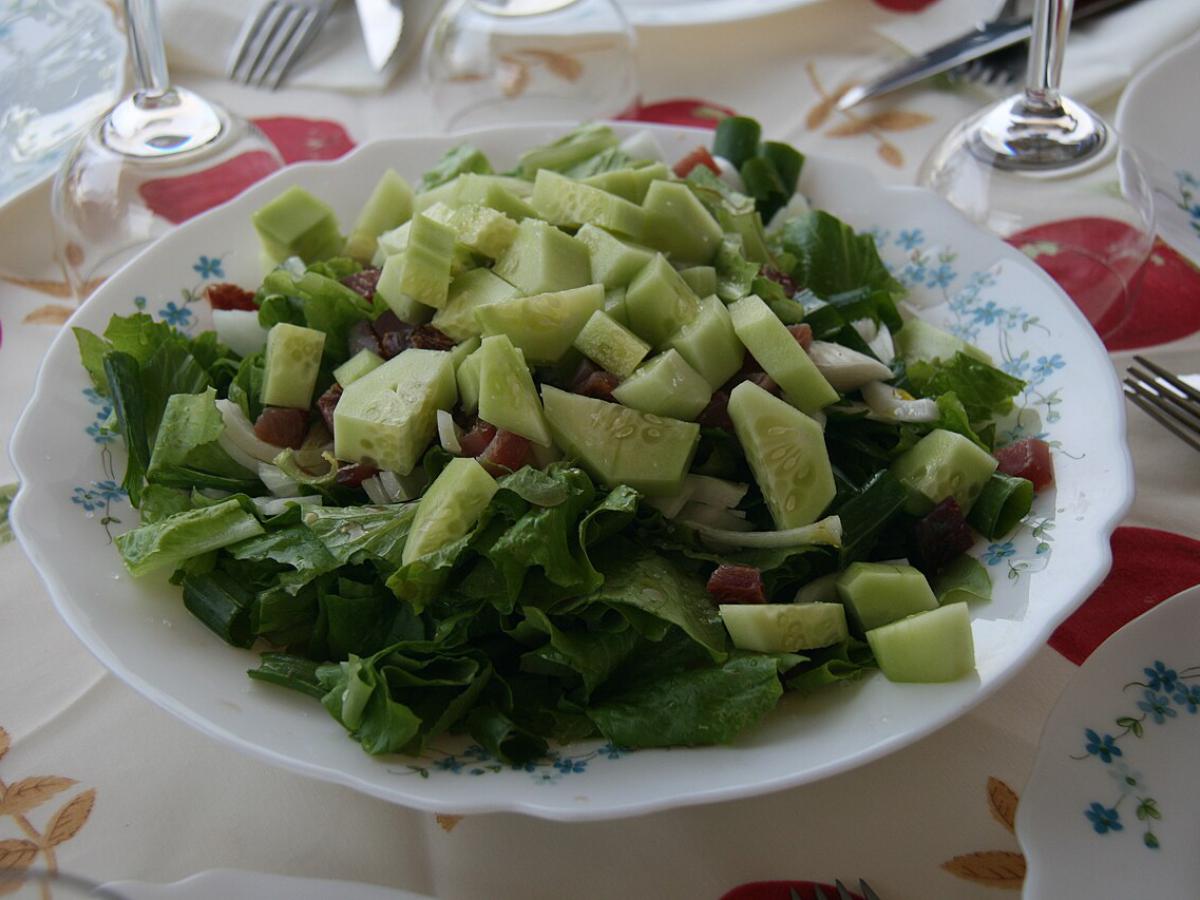 Сала́т (от итал. salato — «то, что засолено» через фр. salade) — холодное блюдо, состоящее из одного вида или смеси разных видов сочетающихся между собой нарезанных продуктов в заправке.