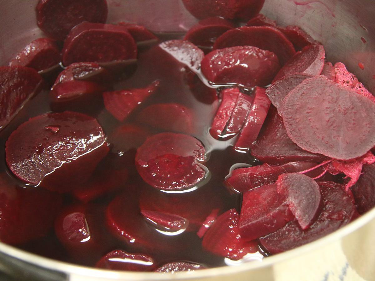 Одна чайная ложка сока на 2 литра воды — и свекла останется яркой. Вводим кислоту сразу, как поставили кастрюлю на огонь.