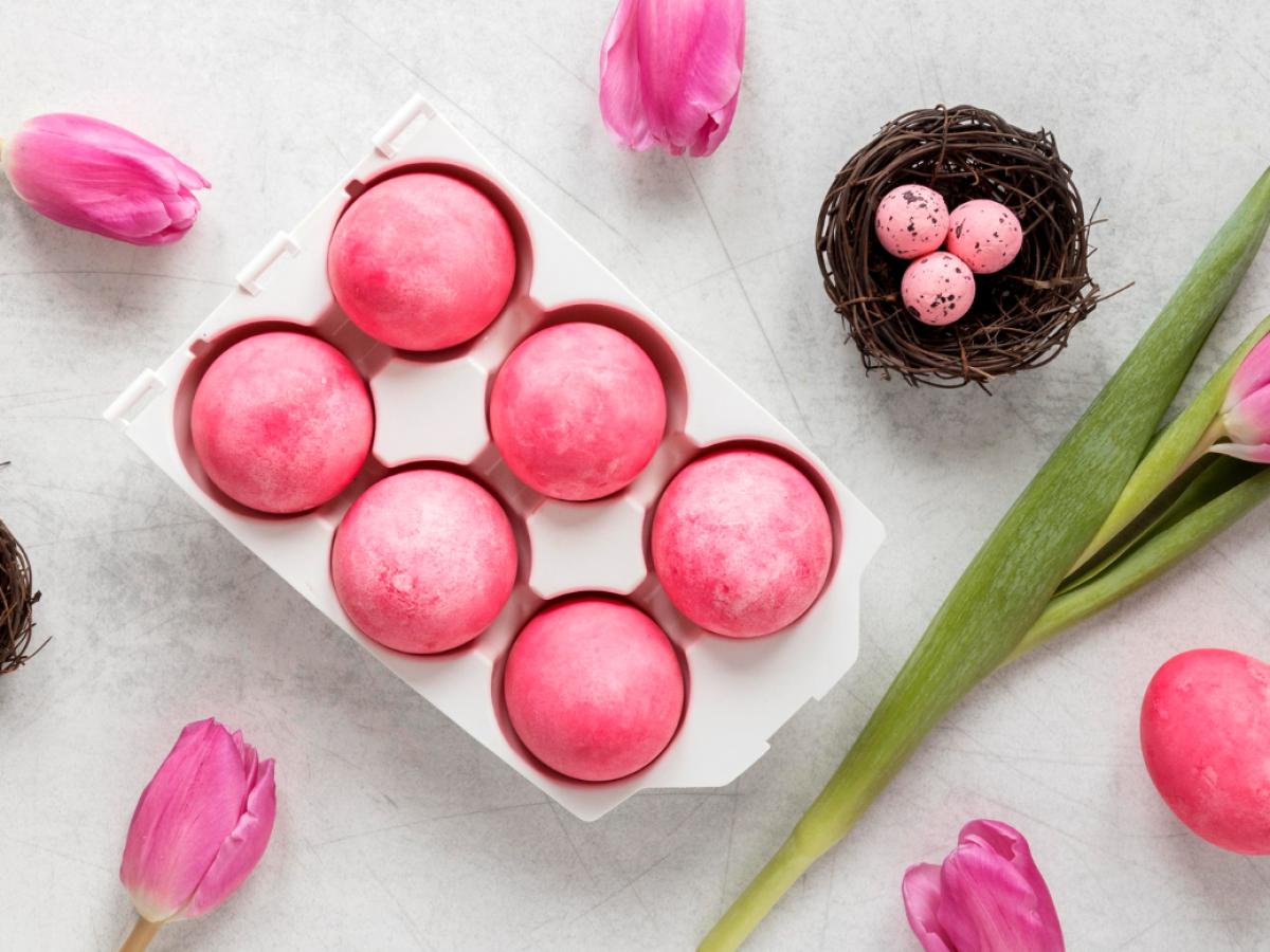 В результате вы получите яйца с насыщенным розовым цветом, который выглядит эффектно как в матовом, так и в глянцевом варианте. Этот метод экологичен и прост, что делает его идеальным для пасхальных традиций.