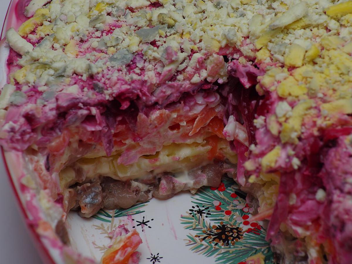 На столе "шуба" всегда стояла рядом с оливье. Они были парой главных салатов, символами уюта, праздника, "как у бабушки" — и, конечно, больших тарелок и маленьких ложек.