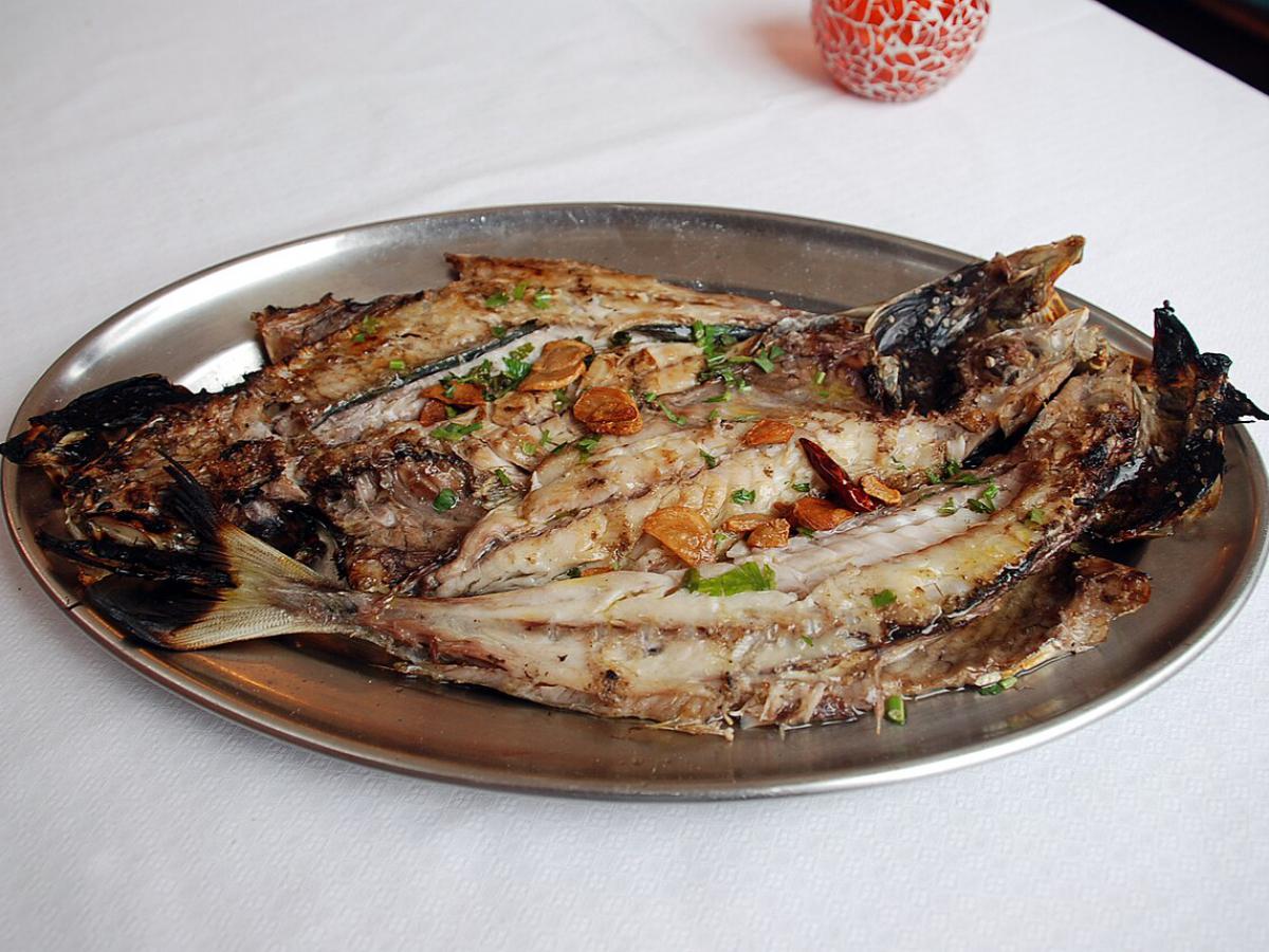 Разделайте скумбрию на филе, снимите кожу. Смешайте куркуму с солью и чёрным перцем, натрите рыбу и оставьте промариноваться на 10 минут. Жарьте филе на углях по 2 минуты с каждой стороны — или запекайте под грилем 6–7 минут, перевернув один раз.