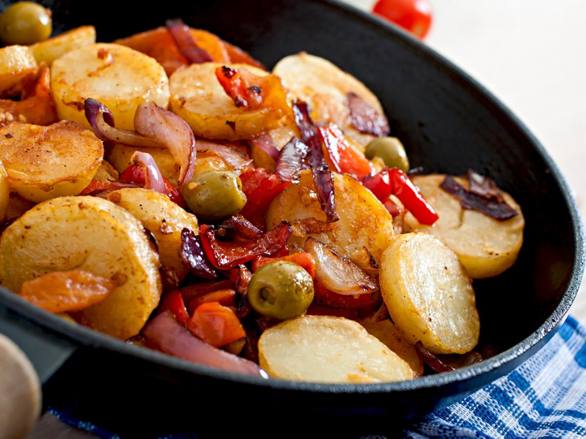 Верните картофель в сковороду, перемешайте и прогрейте всё вместе пару минут. Подавайте с рубленой петрушкой.