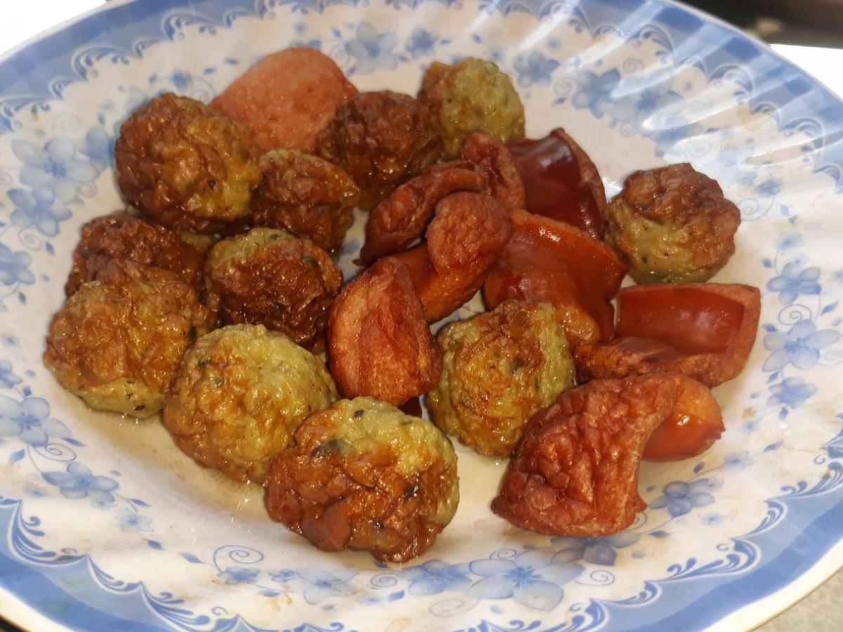 Фрикаде́льки фрикаде́ли (от итал. frittatella — «жаренное на сковороде» через нем. Frikadelle или фр. fricadelle) — кулинарное изделие в форме шариков из мясного, реже рыбного фарша для последующего отваривания, припускания или тушения.
