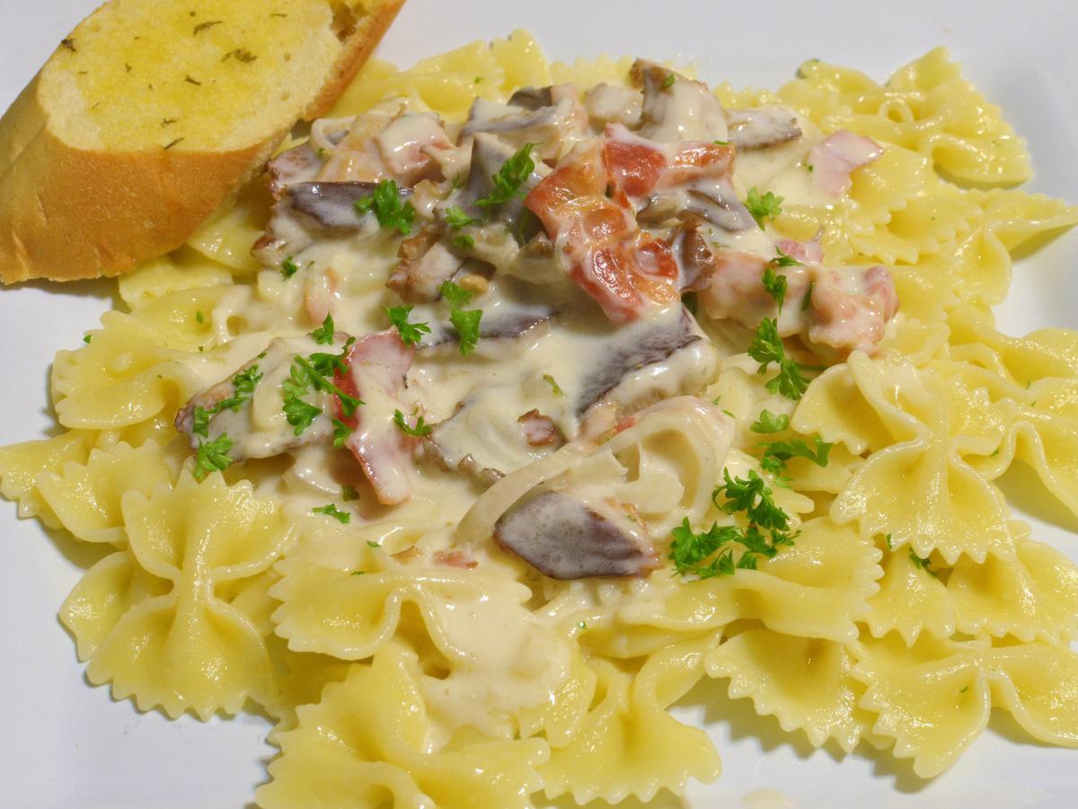 Подавайте пасту горячей, при желании украсив свежей зеленью, советует kiskegyed.hu.