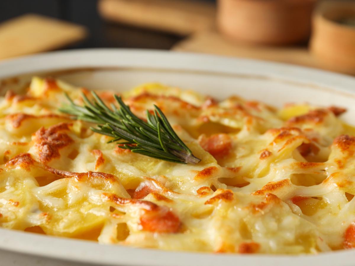 Запекание. Поставьте форму в разогретую до 180 градусов духовку и запекайте 20-25 минут, пока верх не подрумянится, а картофель не станет мягким.