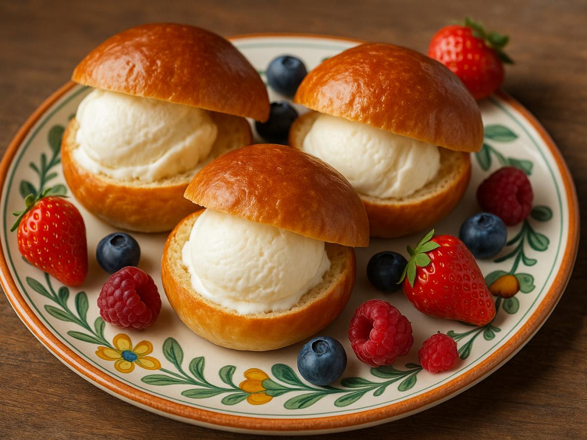 Этот десерт пришёл из Сицилии, где его традиционно подают даже на завтрак в жаркие дни. Это просто: шарики мороженого, завернутые в разрезанную булочку бриошь. Больше ничего не нужно. Маслянистая булочка мягко обволакивает начинку, превращая каждый укус в сочетание крема и сдобы. В лучших пекарнях используют бриошь с туппо — булочку с характерной «шляпкой», но подойдёт и любая плотная бриошь без сильной сладости.