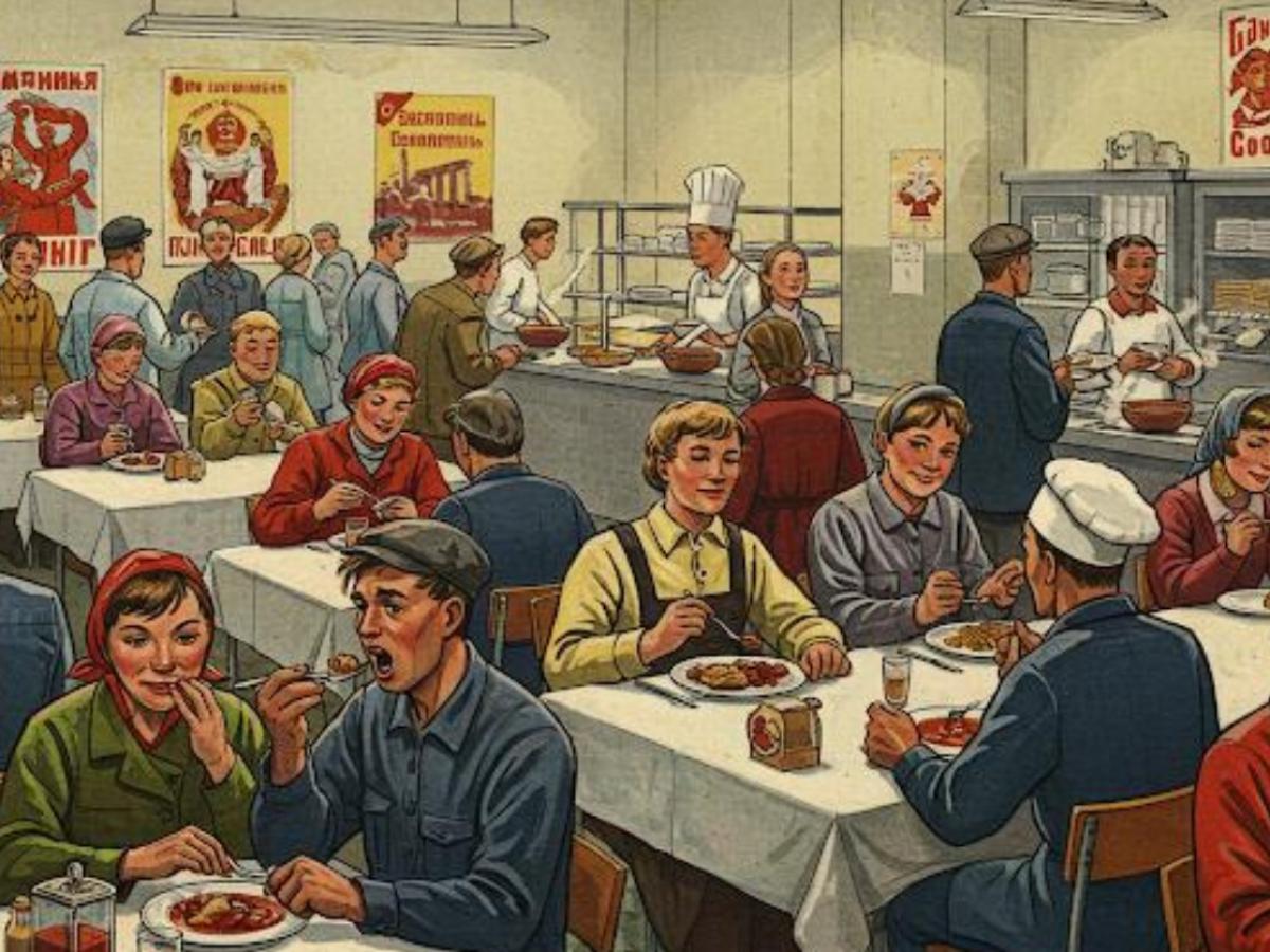 Советская столовая — это был целый микромир. Пар, запахи, котлеты и ощущение, что жизнь хоть и по плану, но с соусом.