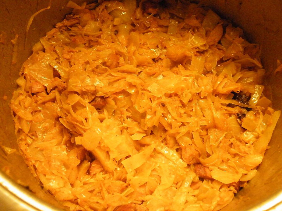 Добавление мяса. Если вы хотите сделать капусту более сытной, можете добавить мелко нарезанное мясо или сосиски на стадии обжаривания лука.
