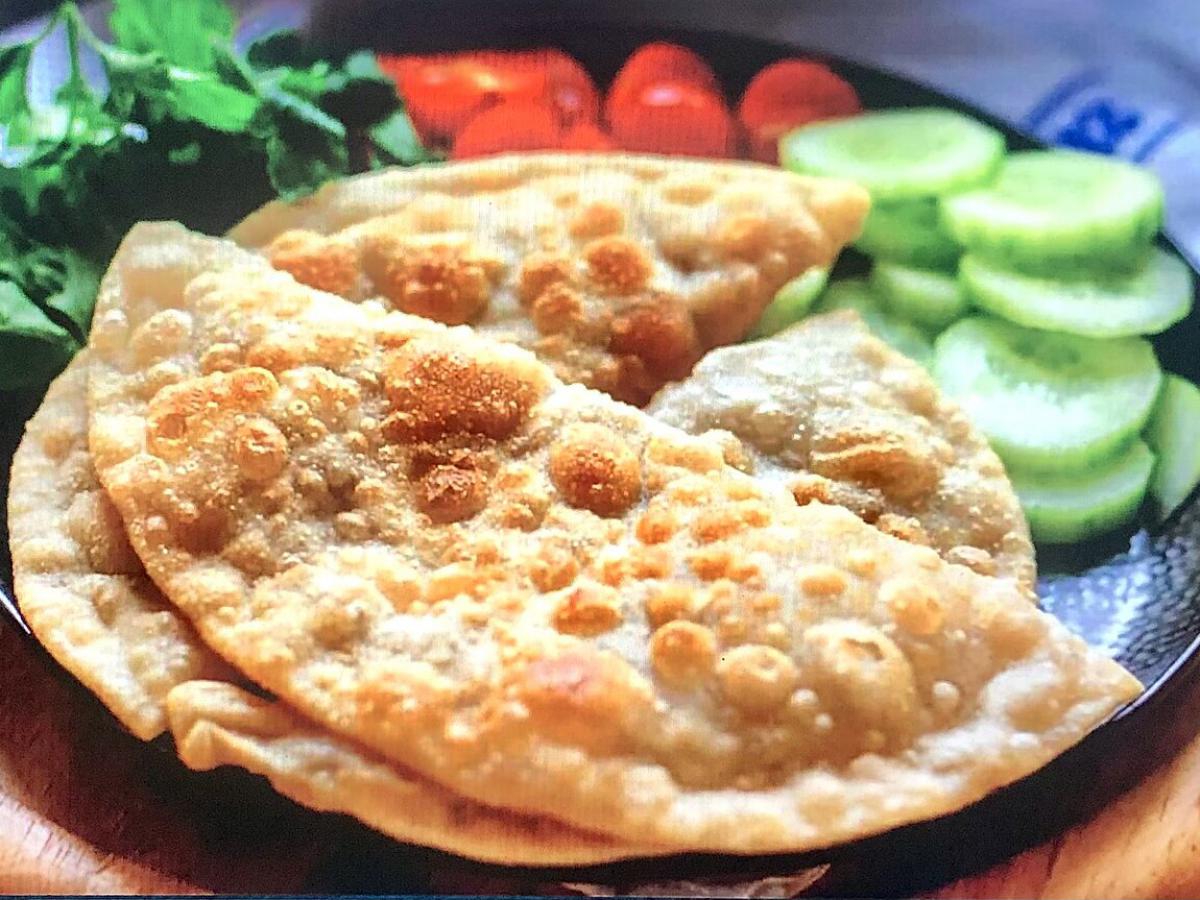 Начинка: на одну половину раскатанного круга выложите 1-2 ст. ложки начинки. Не переборщите, иначе чебурек будет трудно закрыть.