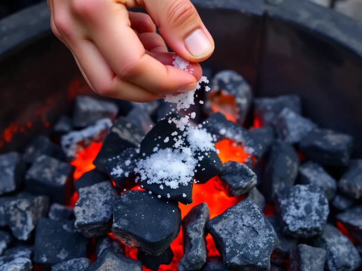 Соль поглощает часть тепла, что помогает предотвратить быстрое прогорание угля. Это позволяет поддерживать стабильную температуру и делает приготовление пищи более равномерным и контролируемым.