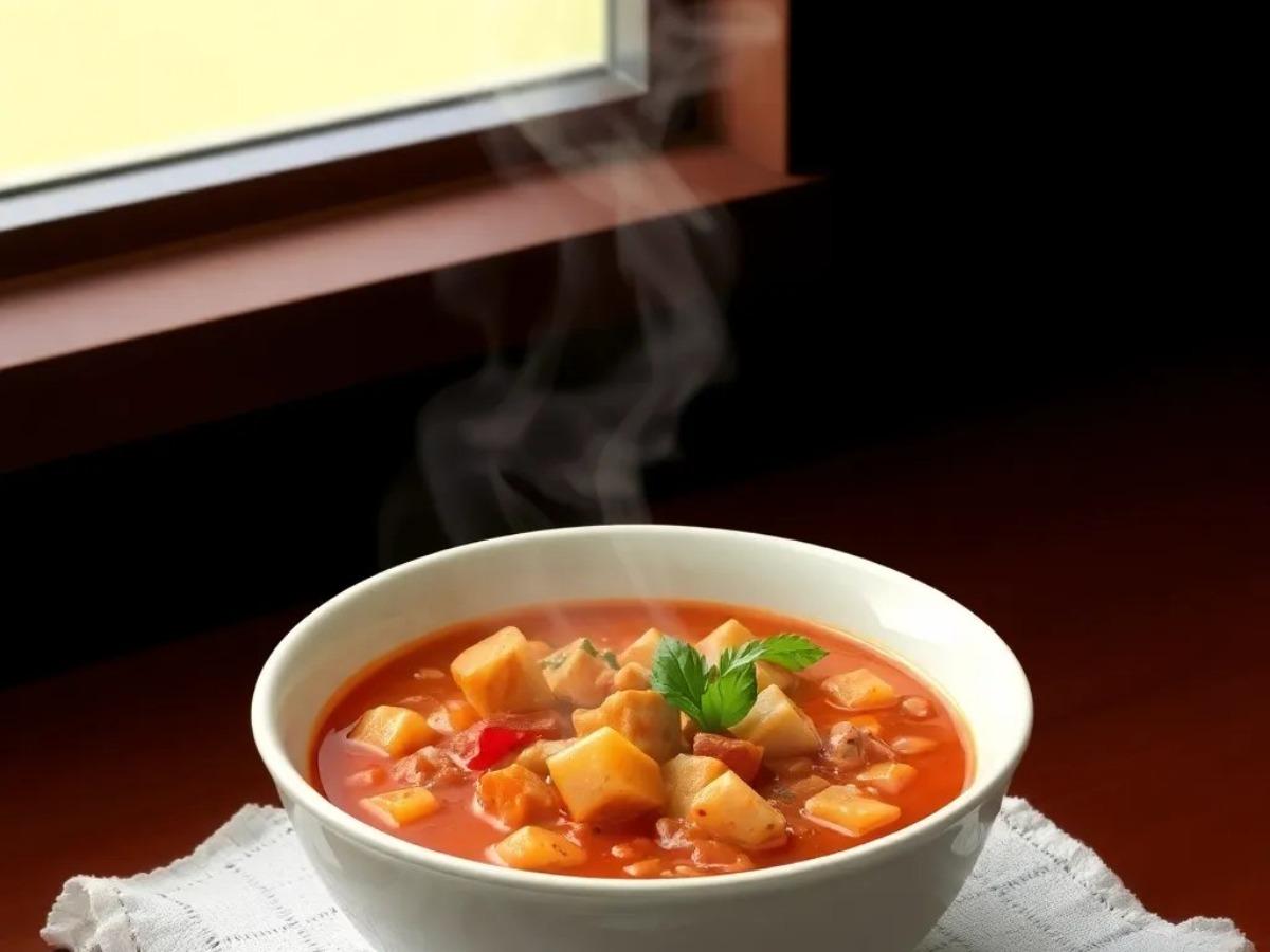 Суп-гуляш — сытное блюдо с говядиной, специями и вкусным бульоном.