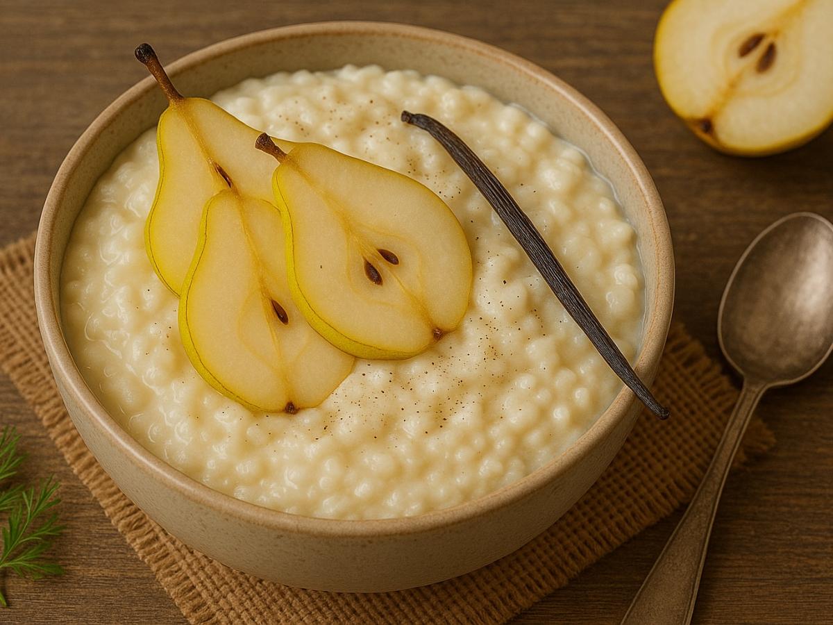 Рис даёт продолжительное чувство сытости, а груши, обжаренные с коричневым сахаром, превращают обычную кашу в настоящее лакомство. Добавьте немного ванили, и аромат наполнит кухню теплом и уютом. Каша идеально подходит не только для взрослых, но и для детского меню. А при замене сливок на кокосовые или овсяные, её можно смело включать в веганский рацион.
