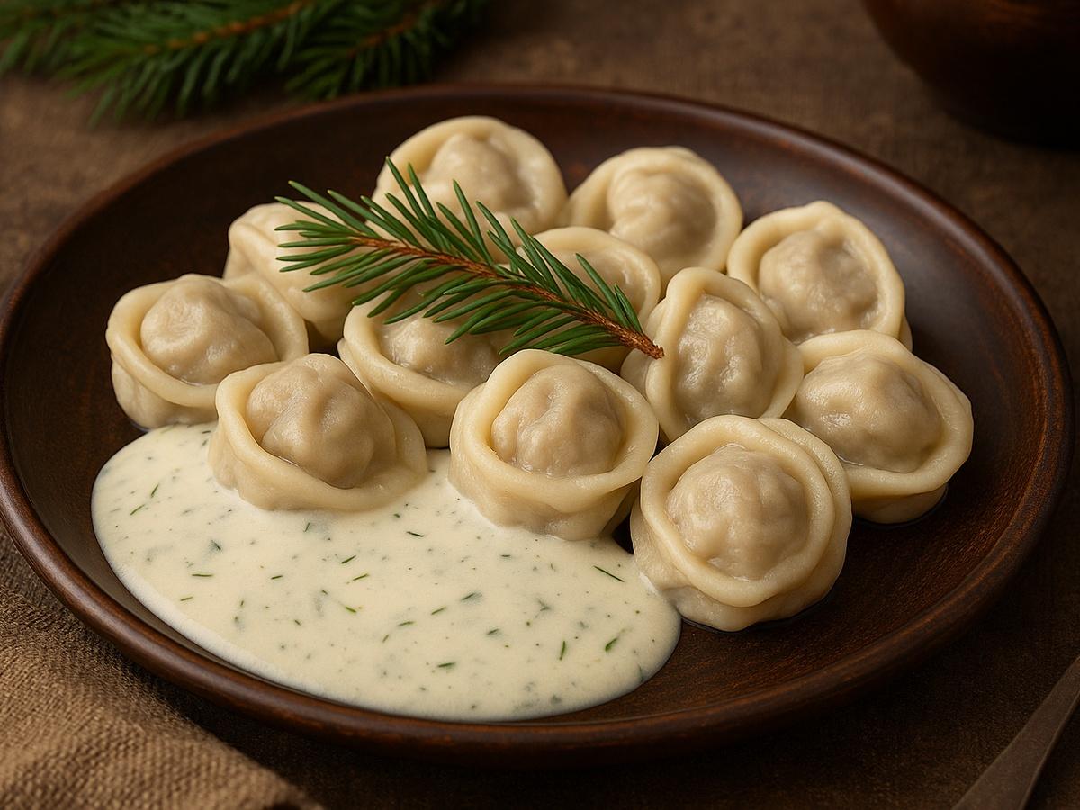 Пельме́ни - блюдо русской кухни из пресного теста с начинкой из рубленого мяса или фарша, употребляемое в варёном виде.