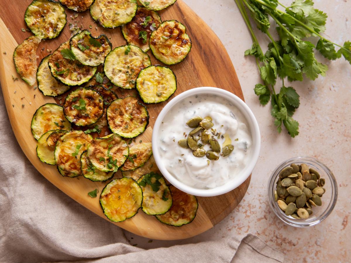 Кабачки вымойте, обсушите бумажным полотенцем и нарежьте кружочками толщиной около 0,5 см.