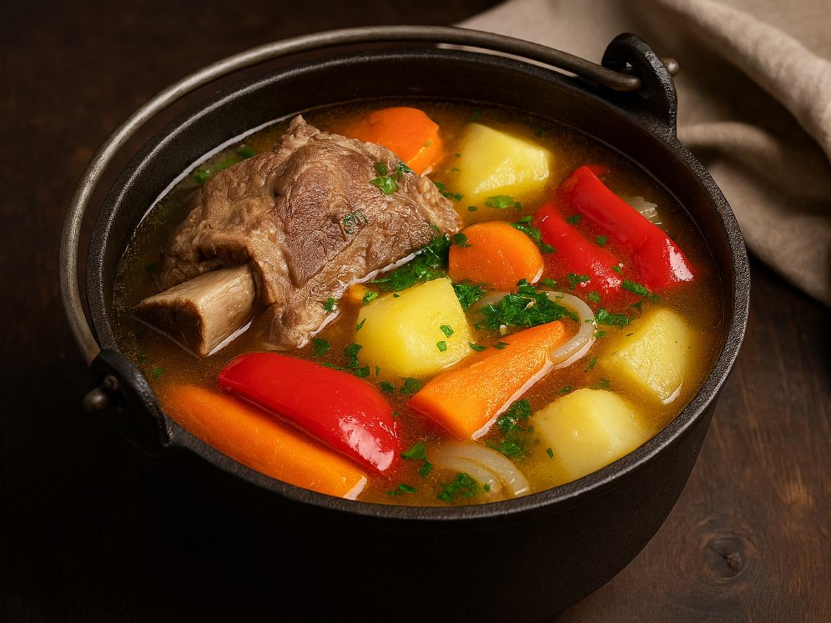 Шурпа — блюдо с историей. Её готовят тюркские народы, а сегодня она считается национальной в Узбекистане, Туркменистане и странах Балкан. В афганском казане суп получается особенно ароматным: мясо на кости и крупные овощи томятся под давлением, сохраняя все соки и насыщенный вкус.