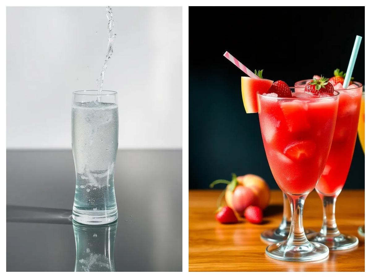 4. Залейте пюре минеральной водой и аккуратно смешай.