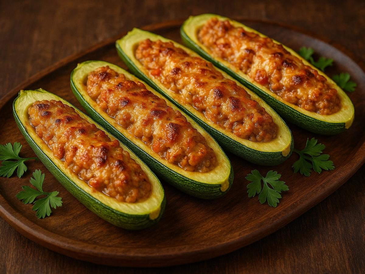Чем суше "лодочки" перед фаршировкой, тем лучше они держат форму: после бланширования обязательно промокните их насухо. Панировочные сухари в начинке регулируют сочность — добавляйте понемногу, добиваясь мягкой, но не жидкой консистенции. Яйцы отвечают за структуру: они "схватывают" массу в духовке и удерживают соки внутри. Фольга — ваш друг в первые 2/3 времени: под ней начинка доходит без пересушивания, а финальное подрумянивание при открытой форме даёт желанную корочку. Не бойтесь температуры 180 °C: она достаточна, чтобы пропечь и начинку, и стенки кабачков, не превратив их в пюре.