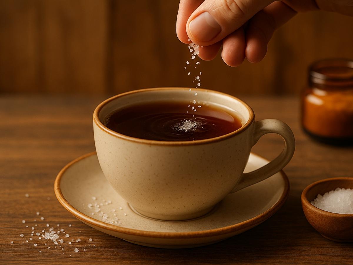 Терпкость крепкого чая связана с высоким содержанием танинов. Несколько кристалликов соли вступают с ними во взаимодействие и приглушают горечь. В результате напиток становится насыщенным, но без излишней вяжущей нотки. Такой приём работает не только с чёрным чаем, но и с некоторыми зелёными сортами — особенно с теми, у которых выражен травяной или морской профиль.