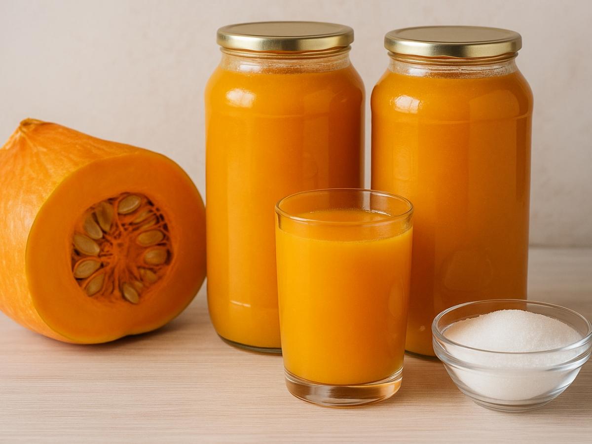 Тыквенный сок с мякотью — простой и полезный напиток, который можно заготовить на зиму без лишних добавок. В нём сохраняется естественный вкус овоща, а готовый продукт подходит даже детям старше трёх лет (лучше обсудить этот момент с педиатром). В отличие от свежевыжатого, такой сок готовят из отварной тыквы, ведь из сырой мякоти извлечь жидкость практически невозможно.