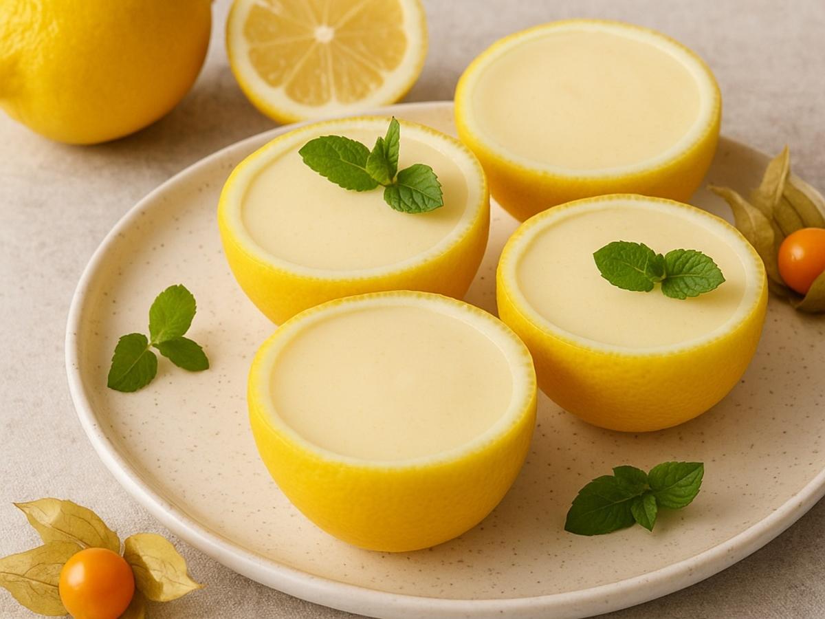 Такой десерт впечатляет не только вкусом, но и подачей: лимонные чашечки с нежным кремом смотрятся ярко и празднично.
