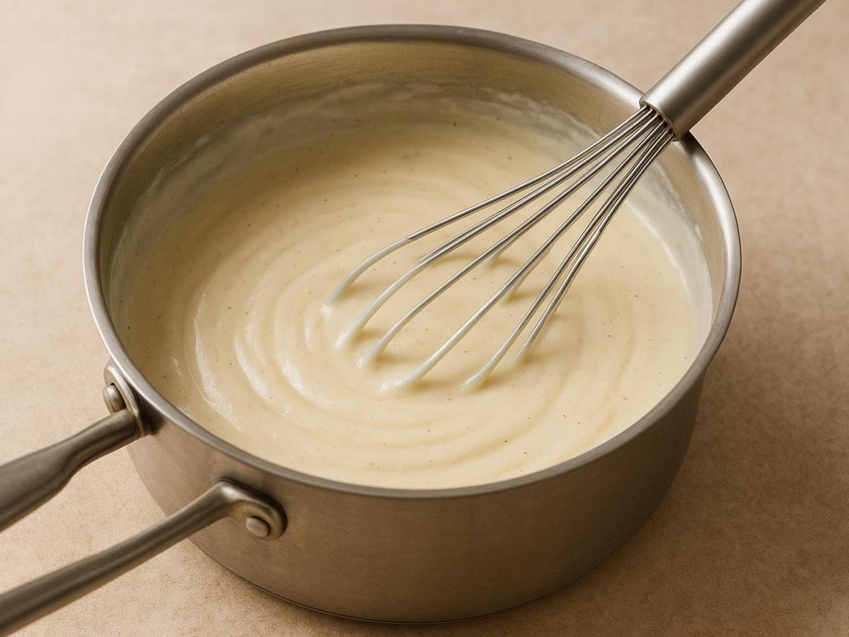 Перелейте сливки в глубокую миску и начните взбивать миксером на небольшой скорости. Постепенно увеличивайте обороты и доведите сливки до плотных пиков — это займёт около 3-4 минут. Продолжая взбивать, добавьте сахарную пудру и щепотку ванилина. Получится сладкая и однородная основа для будущего соуса.