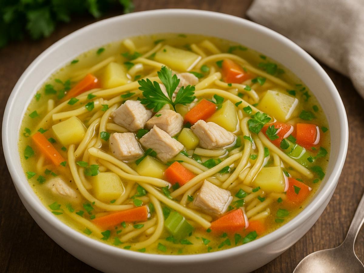 …заменить мясной бульон овощным? Получите более лёгкий вариант без лишнего жира.