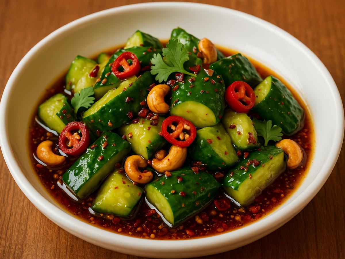 Традиционные битые огурцы готовят с чесноком, кунжутным маслом и рисовым уксусом. Но в современной версии, которую предложил шеф-повар Ли Чжан из ресторана Mr. Lee, к классике добавляются лёгкая острота чили и хруст жареных кешью. Получается яркий, пикантный и сбалансированный вкус — с хрустящей свежестью, ореховой ноткой и приятным острым послевкусием.