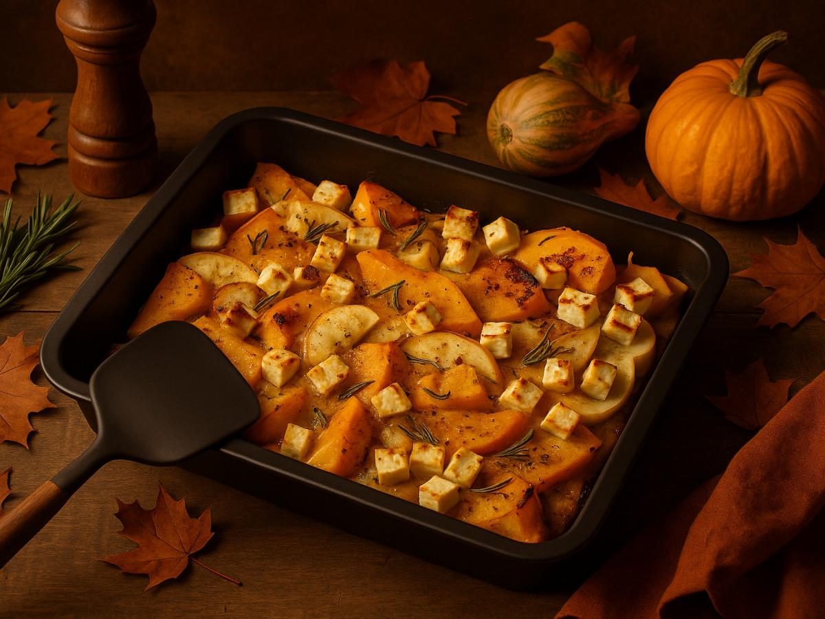 Этот рецепт — настоящий уют на тарелке. Сладковатая тыква, ароматный красный лук и кисловатые яблоки создают баланс вкусов, а нежная заливка из сливок, мёда и яиц превращает всё в аппетитное и питательное блюдо. Добавьте немного феты — и получите лёгкий ужин, который не только сытен, но и очень красив на вид.