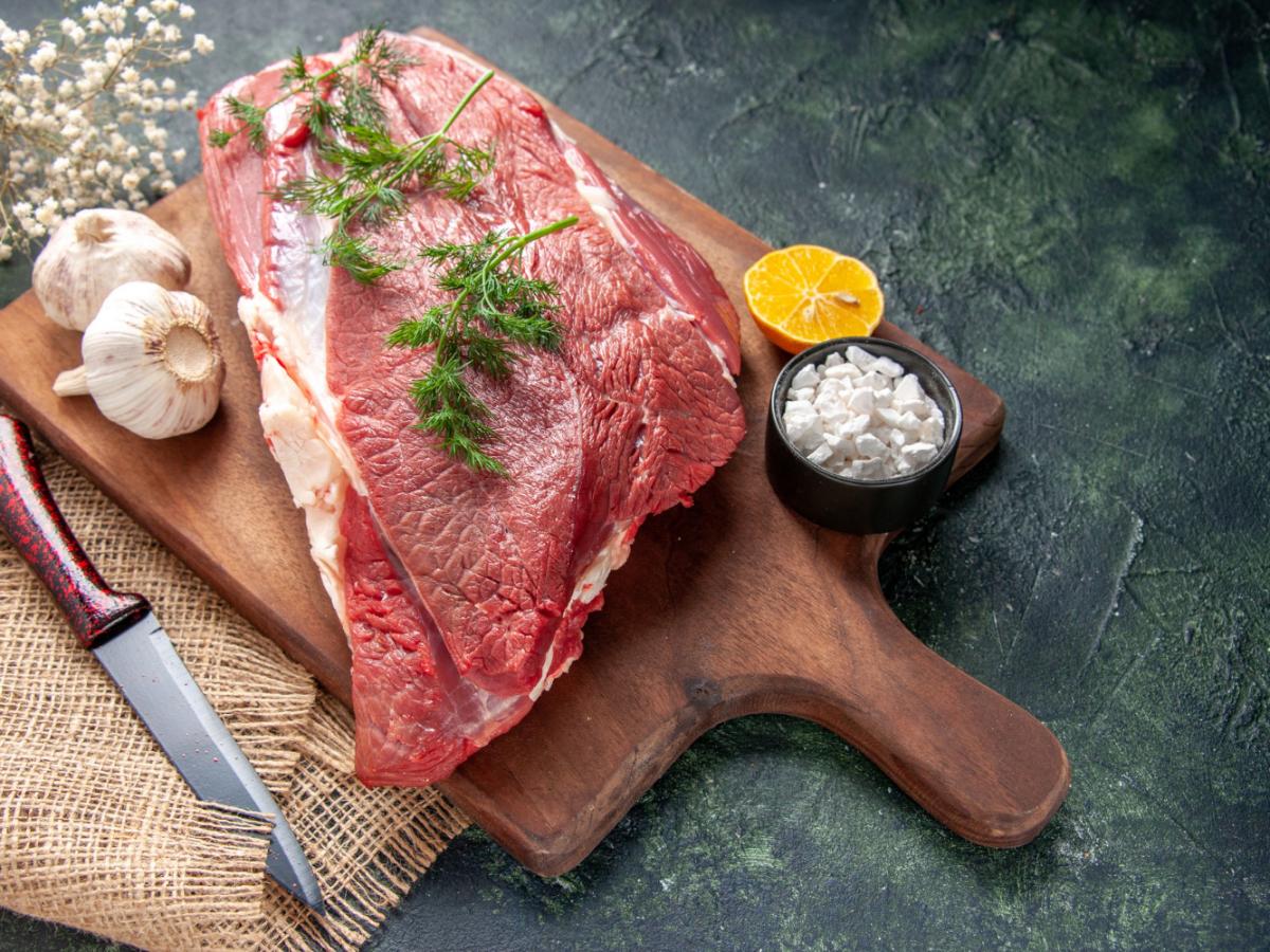 Качественная говядина должна быть сухой на ощупь, без слизи и постороннего запаха. Цвет мяса — насыщенно-красный, без серых или зелёных пятен. Поверхность упругая, при нажатии пальцем образуется лёгкая ямка, которая быстро выравнивается.