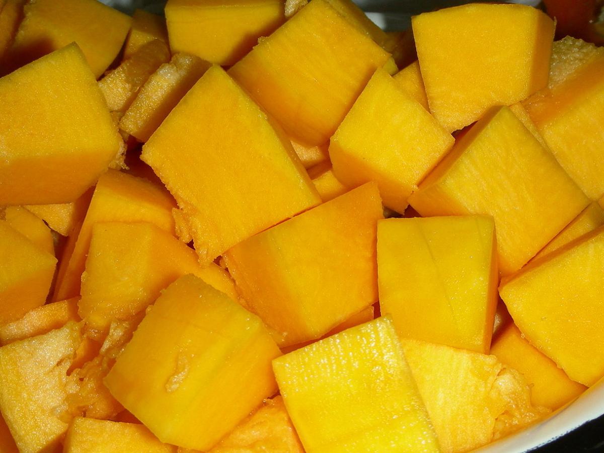 Для варки подойдут сладкие сорта с яркой оранжевой мякотью — например, мускатная тыква. Перед приготовлением плод очищается и нарезается на куски.