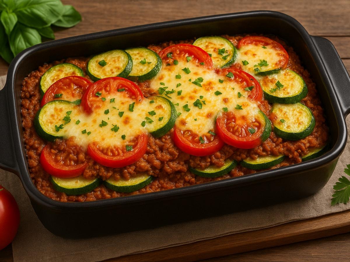 Эта запеканка из кабачков, фарша, помидоров и моцареллы — настоящий компромисс между пользой и удовольствием. Выглядит как большой мясной пирог, но без теста и лишних калорий. Блюдо получается ароматным, сытным и ярким, а главное — приготовить его гораздо проще, чем кажется.