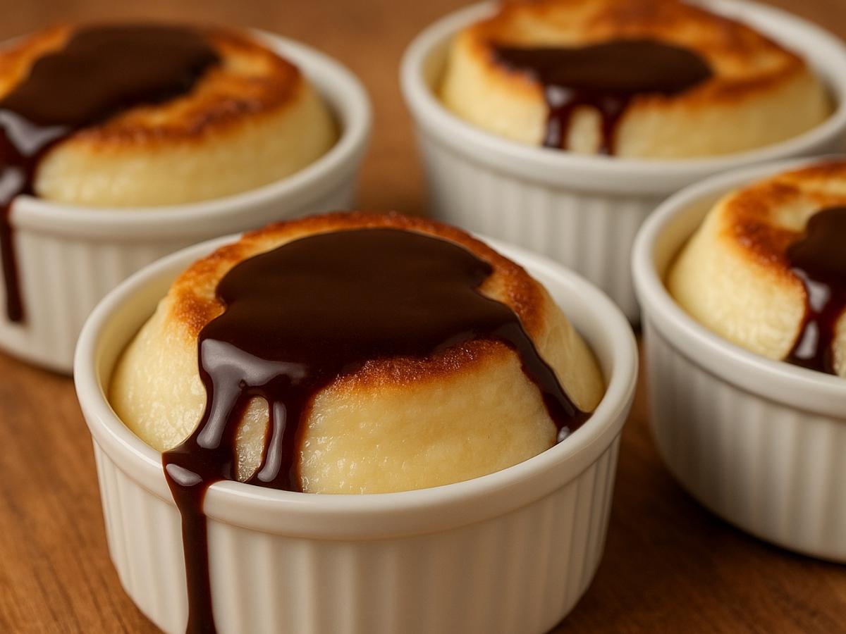 Подавайте сразу из духовки, пока поверхность остаётся румяной, а середина — кремовой.
