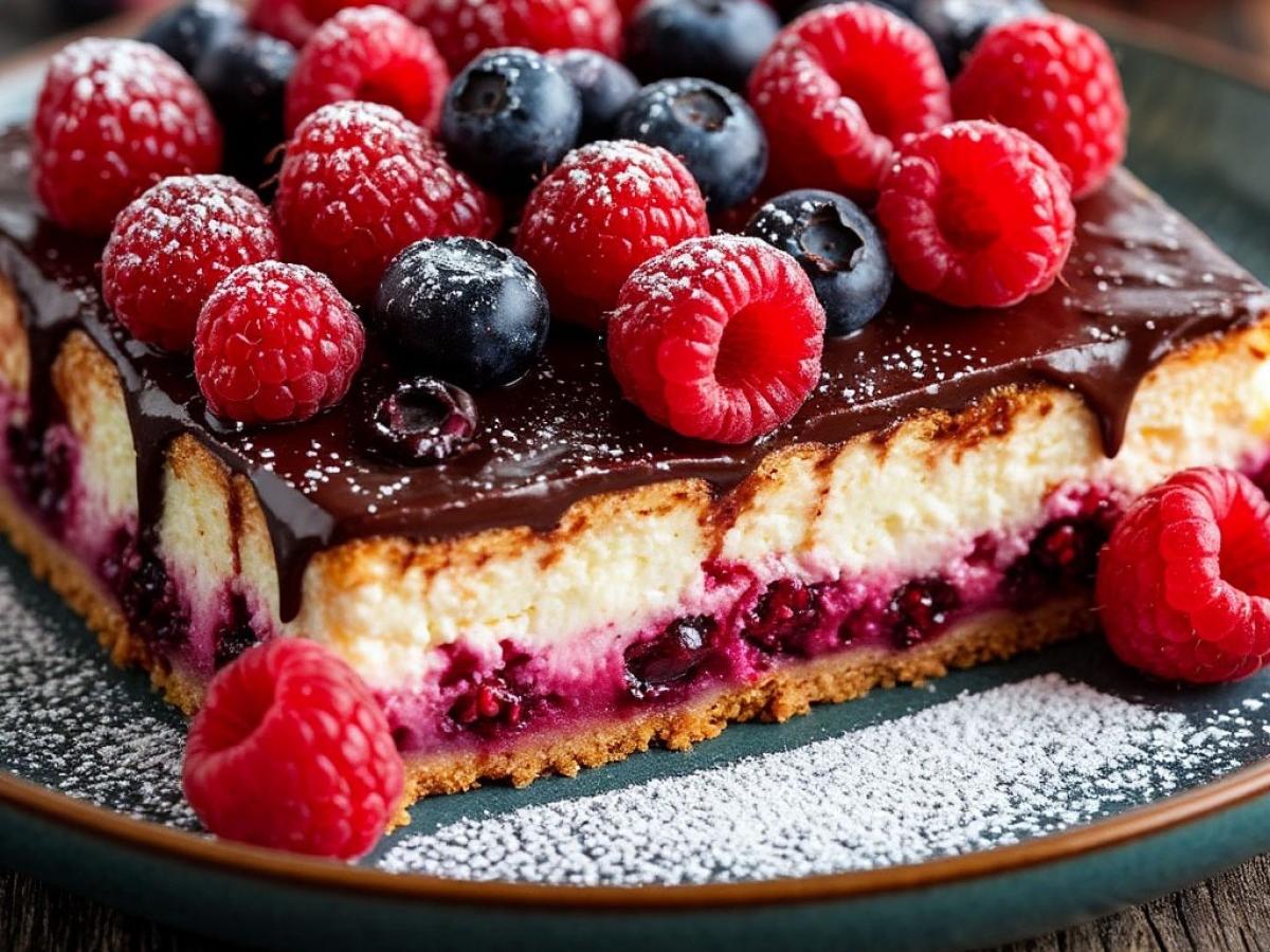 Если у вас в холодильнике залежалась пачка творога, не дайте ей пропасть! Этот пирог — идеальный способ превратить простой ингредиент в изысканный десерт, который удивит и детей, и взрослых. Уникальное сочетание влажного шоколадного теста и нежной творожной начинки создает гармонию вкусов, а сочные ягоды вносят приятную кислинку, балансируя сладость. Этот пирог не просто выпечка, а настоящее событие для вашего чаепития.
