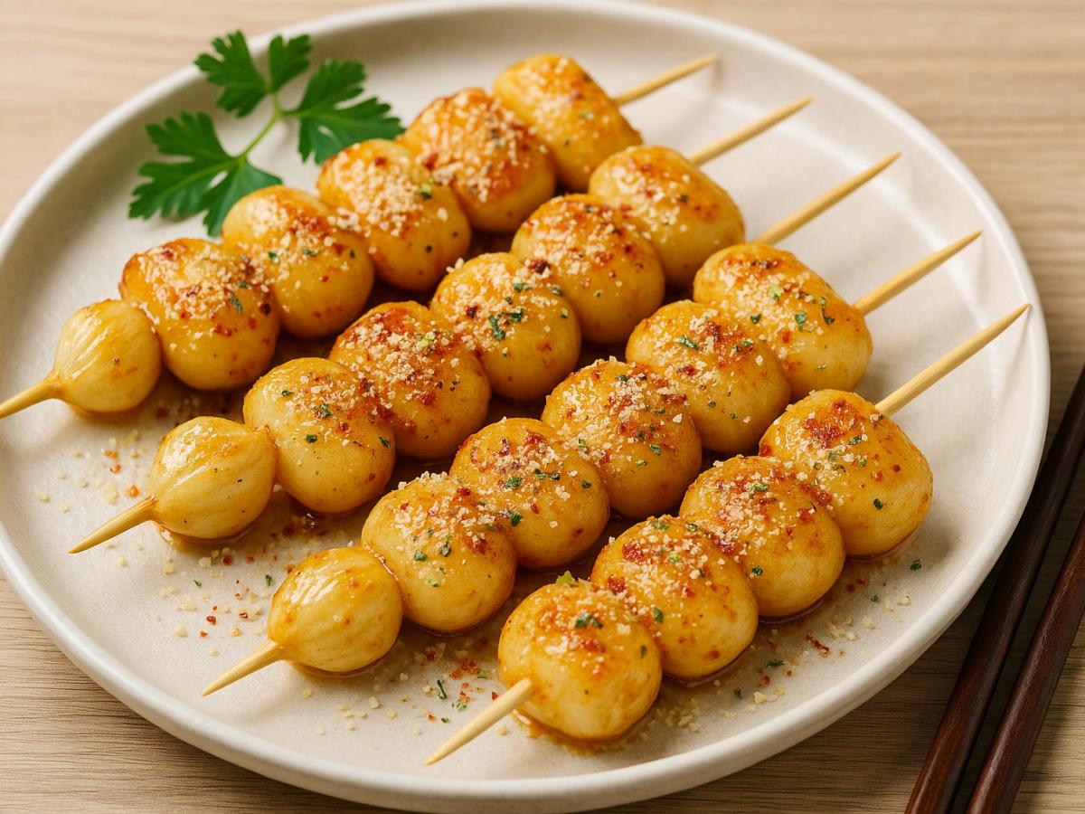 Маныль ттокк-кочхи — популярное блюдо современной южнокорейской кухни, сочетающее простоту приготовления и эффектную подачу. Шашлычки из рисовых клецок токпокки и чеснока можно подать как аппетитную закуску к соджу или как сытное лакомство для всей семьи. Такое блюдо идеально подходит для вечеринки, пикника или праздничного стола — готовится всего за 20 минут.