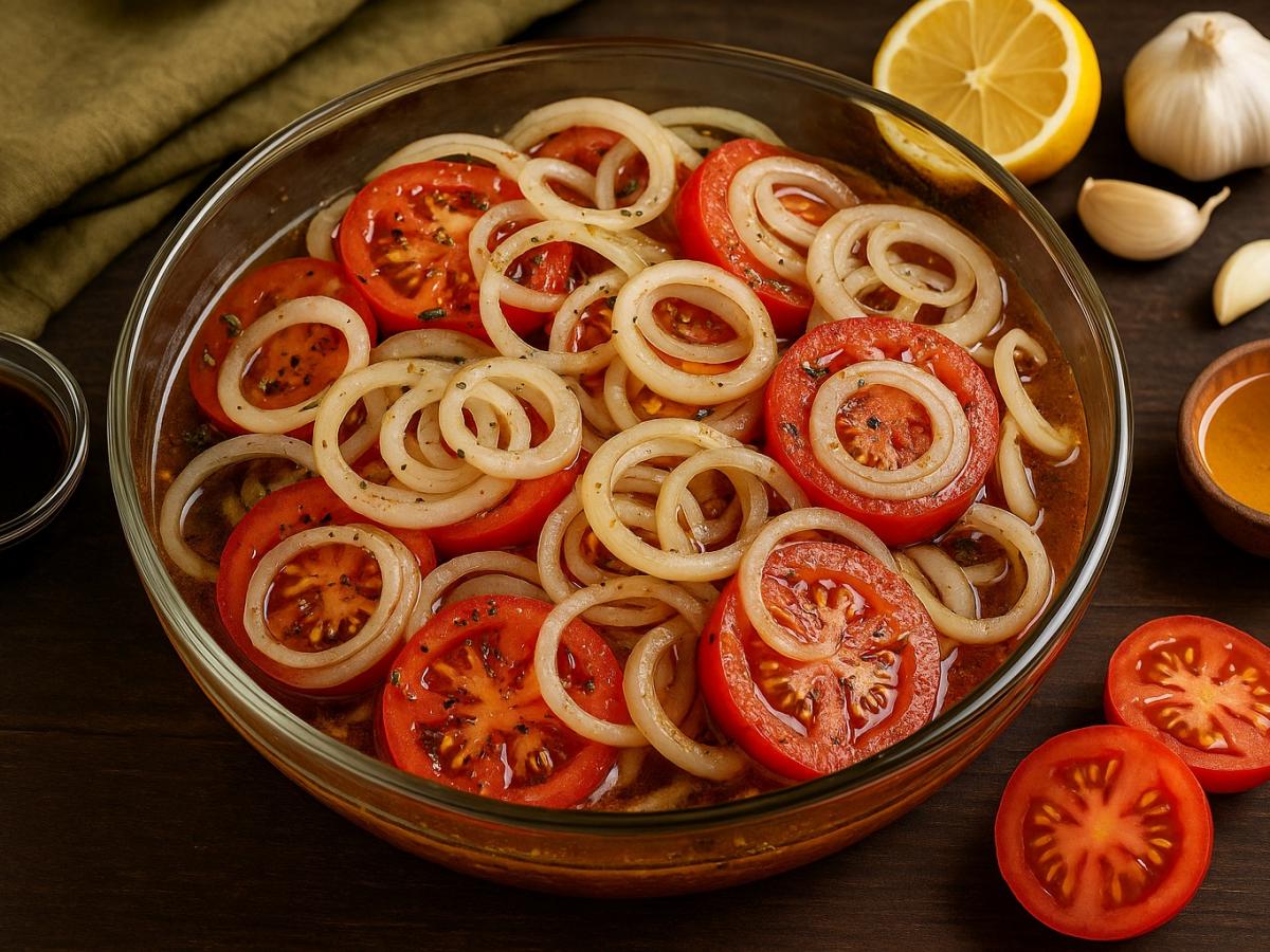 Маринованные помидоры с мёдом — это быстрый способ превратить обычные овощи в изысканную закуску. Благодаря сочетанию соевого соуса, уксуса и мёда вкус получается многослойным: одновременно сладким, солёным и чуть кисловатым. А зелень и чеснок придают блюду свежесть и пикантность.