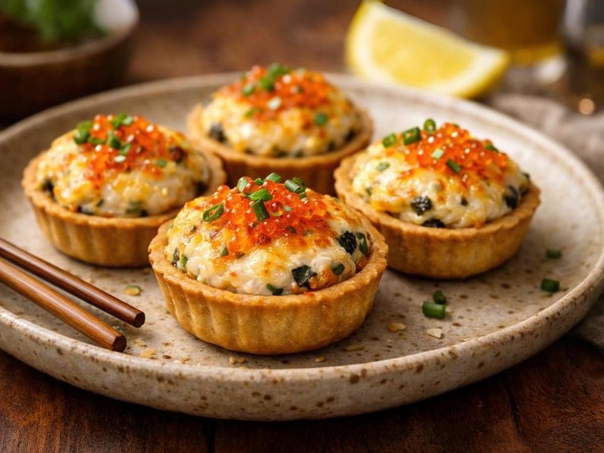 Это запечённая закуска, вдохновлённая японской кухней, но адаптированная под домашние условия. Вместо классических роллов используются тарталетки, а начинка собирается из крабовых палочек, творожного сыра, нори и икры мойвы. Такой формат не требует навыков работы с рисом и бамбуковым ковриком, при этом сохраняет узнаваемый вкус.