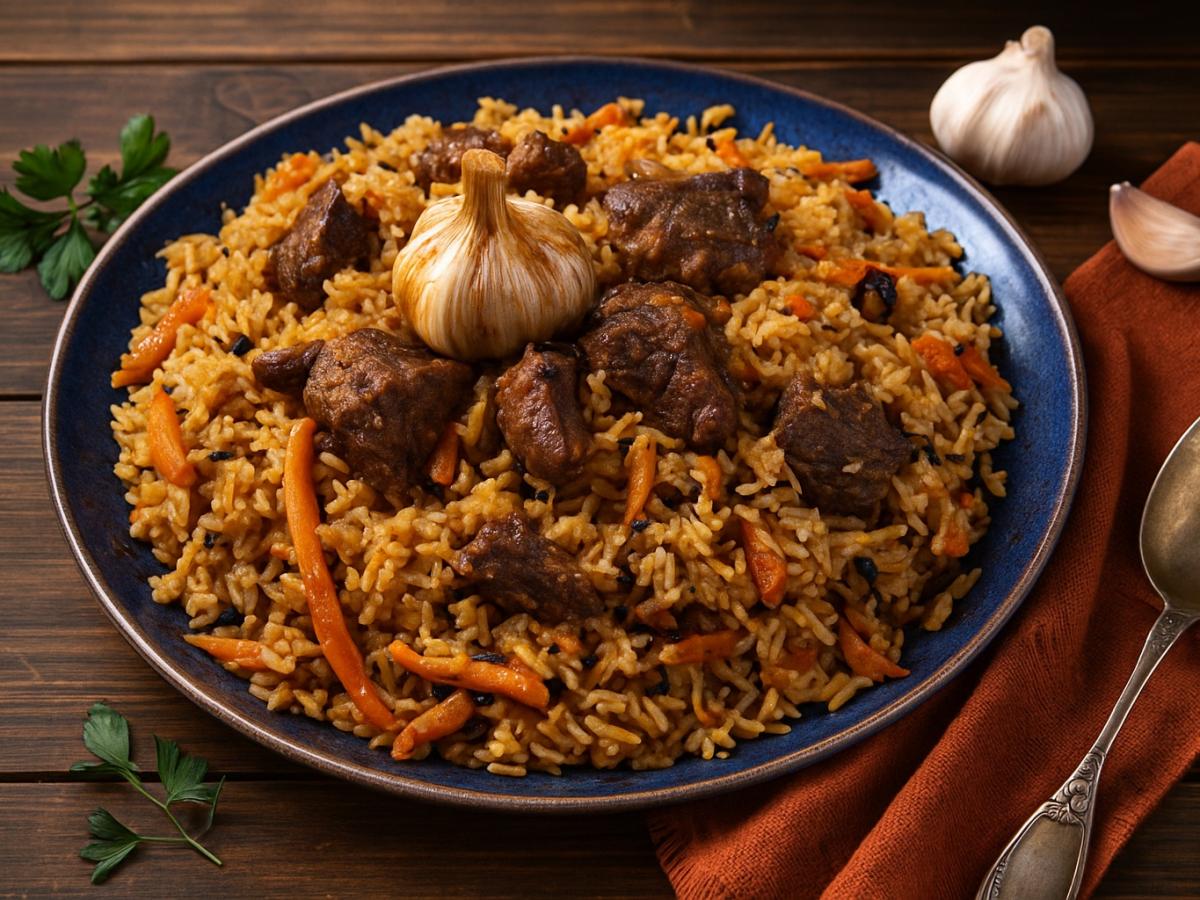 Морковь традиционно нарезают брусочками, а не трут на тёрке. Такая форма позволяет ей сохранить текстуру и сладость. Лук, напротив, можно нарезать кубиком — он практически растворится в зирваке, придавая ему насыщенность. Специи — зира, барбарис, куркума — формируют характер плова, поэтому важно не переборщить и добавлять их постепенно, ориентируясь на вкус.